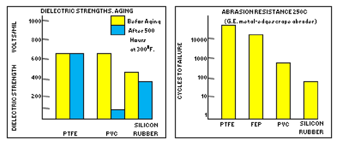 2. Upper Service Temp: Outstanding thermal and electrical properties temp. range from –60c to 250c. The electrical properties of PTFE cables are not altered by long term heating.